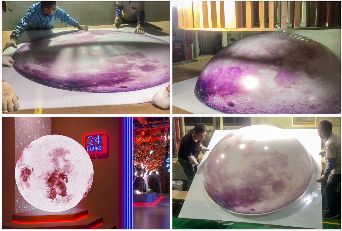 大型吸塑月球造型燈箱是如何制作的呢?請看下文。銷售技術(shù)人員和客戶進行深入的溝通,根據(jù)客戶提供的設(shè)計圖文件,進行深化,包括月球的大小、形狀、顏色、表面紋理等。進行確認(rèn)定稿。